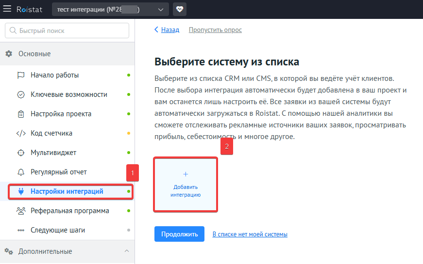 Настройка интеграции с Roistat