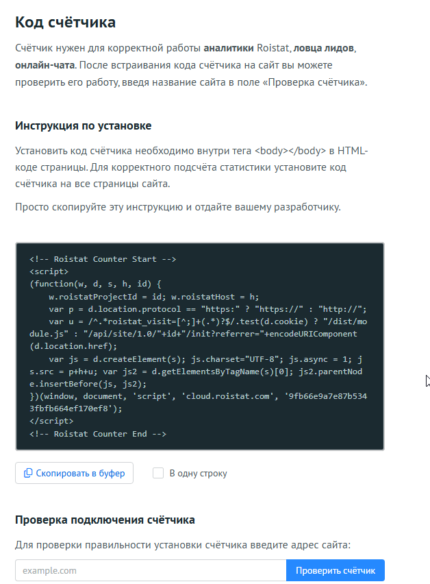 Подключение сервиса Roistat