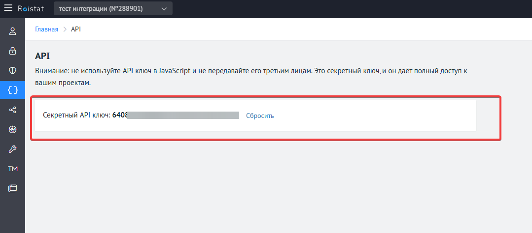 Настройка интеграции с Roistat